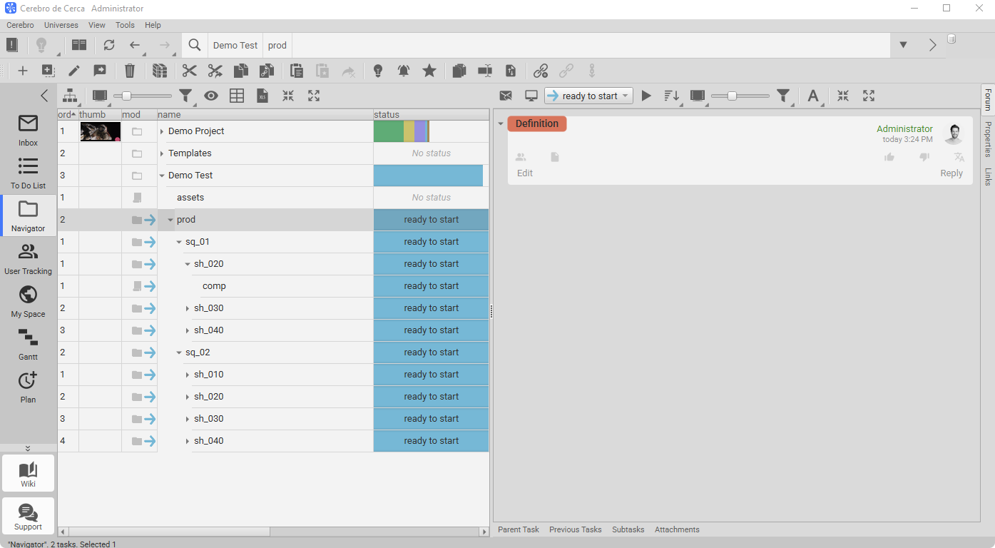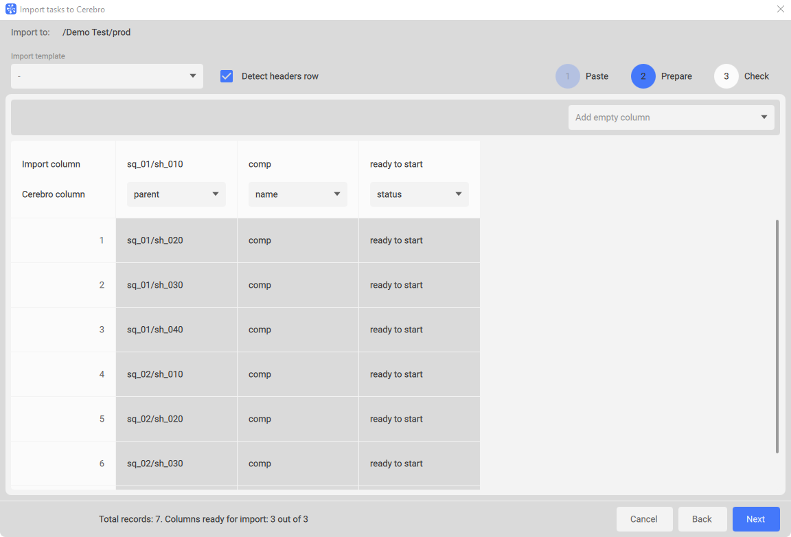 Tasks and their subtasks are separated by slashes. As a result, the following structure will be created in Cerebro: