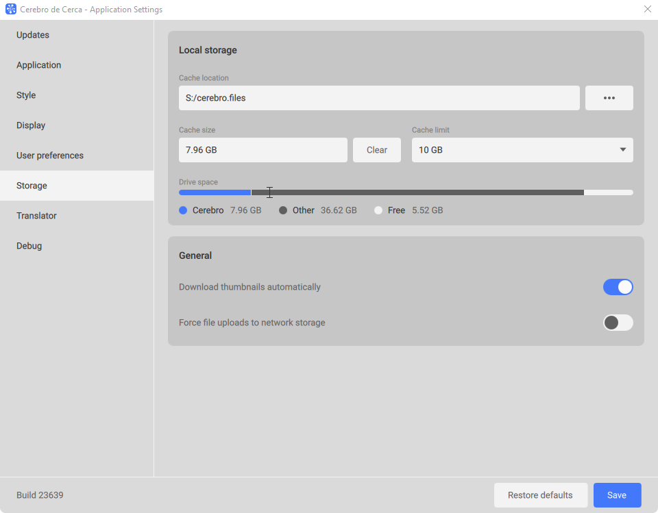 A new cache management tool has been added to the Preferences window. You can now set a storage limit for files downloaded in Cerebro. Once the limit is exceeded, the system will notify you and provide an option to clear the cache. This helps you keep memory usage under control and avoid unexpected issues.