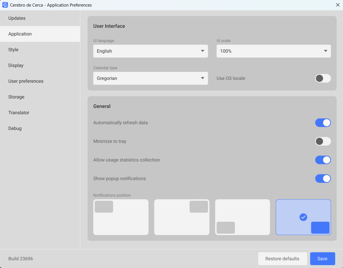 The Cerebro system offers various tools for flexible customization of the program's interface to suit user preferences. To access the settings window, navigate to the main menu → Cerebro → Preferences.
