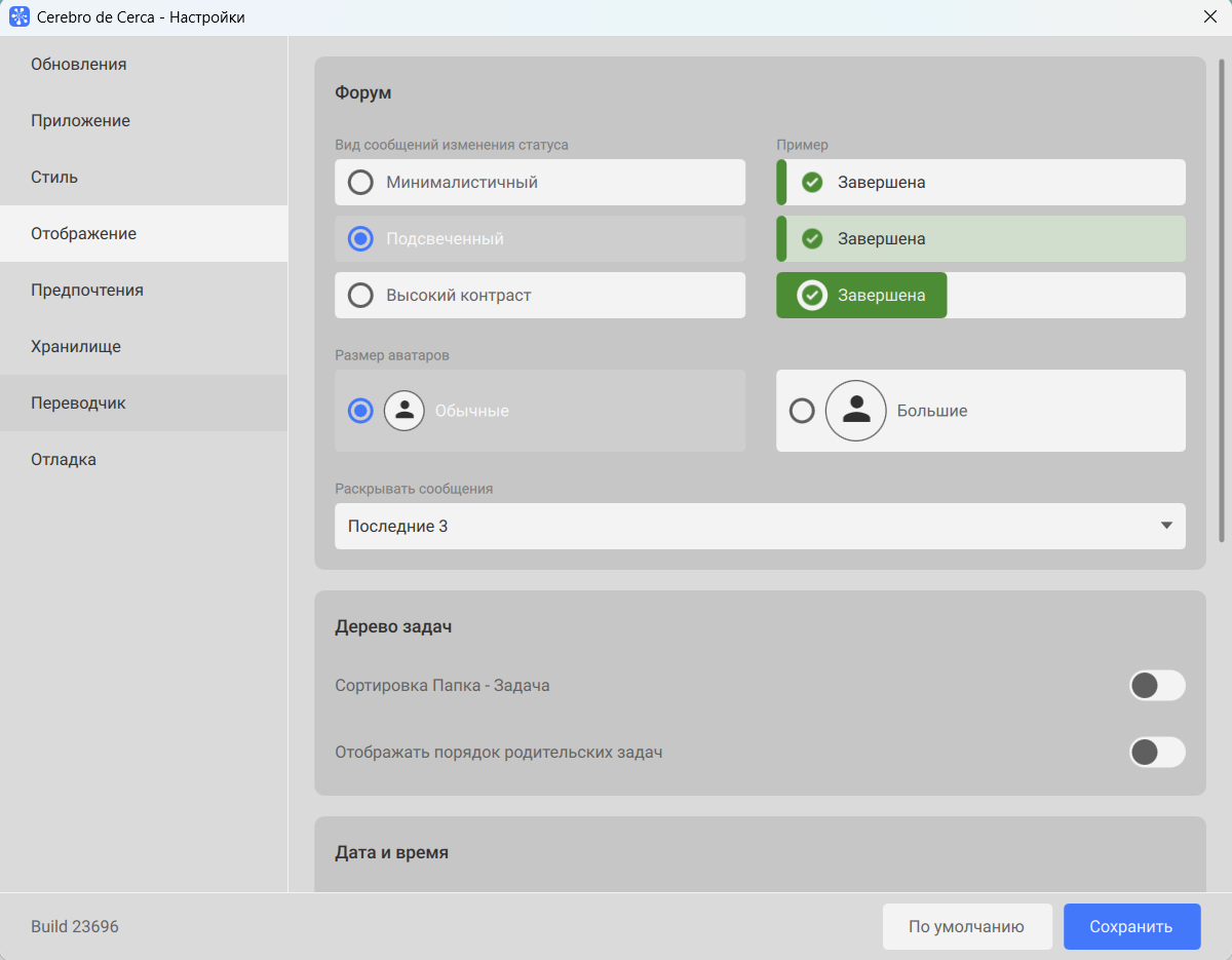 В данной вкладке настроек собраны различные параметры, которые помогут вам эффективно управлять задачами.